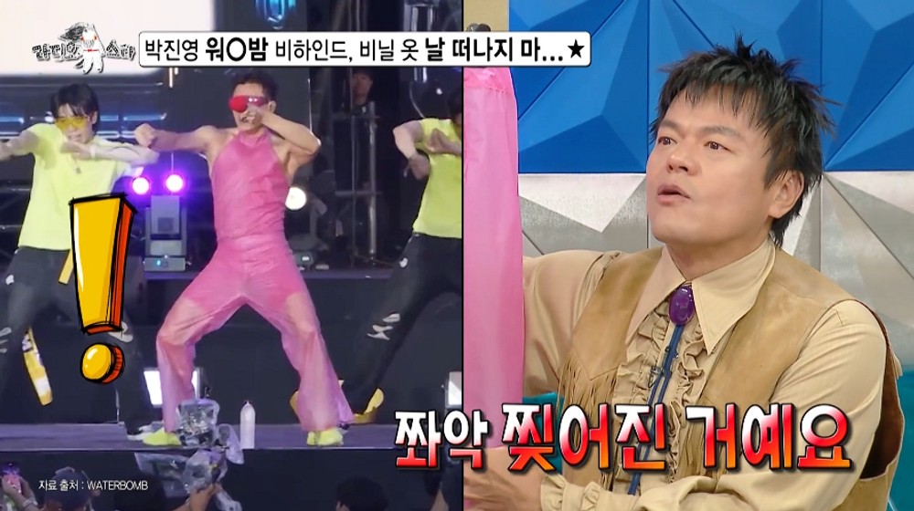 비닐옷 입은 박진영, ‘워터밤’서 비상사태…”바지 찢어졌다” (‘라스’)