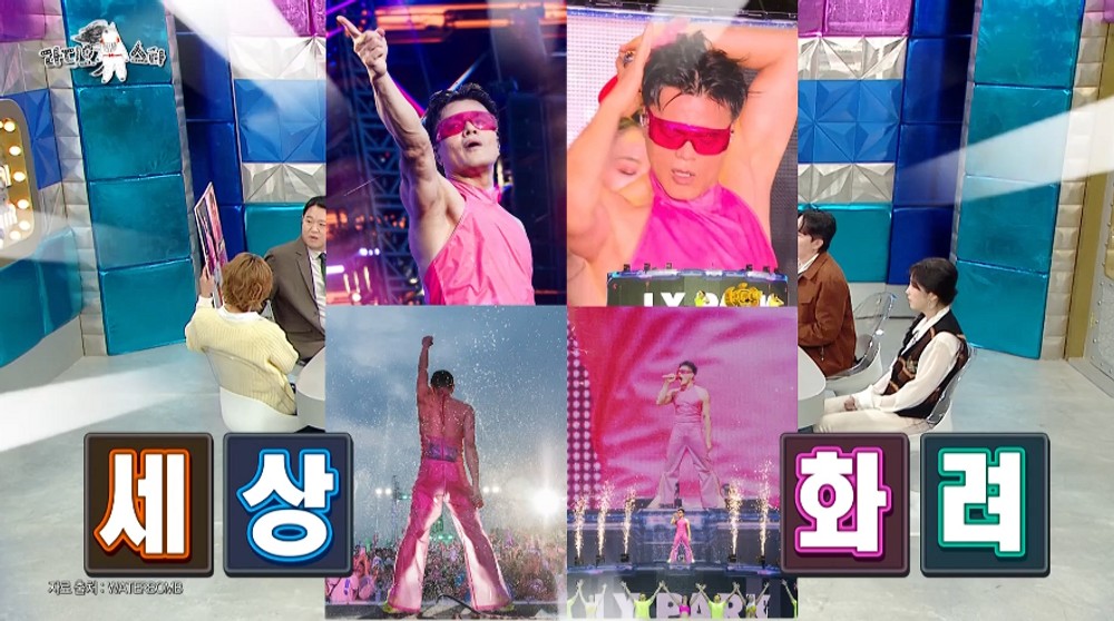 그는 이어 “비닐 옷이 찢어진 게 겉인지 속인지가 중요하다. 겉이 찢어지면 사람들이 모르지 않냐. 관객들 표정을 봤는데 모르는 표정이라 계속 이어갔다”라고 말해 모두를 폭소케 했다. 이에 붐은 “의상을 팔았으면 좋겠다”라며 박진영의 ‘핫핑크 비닐 의상’ 관심을 가지는 모습을 보였다.