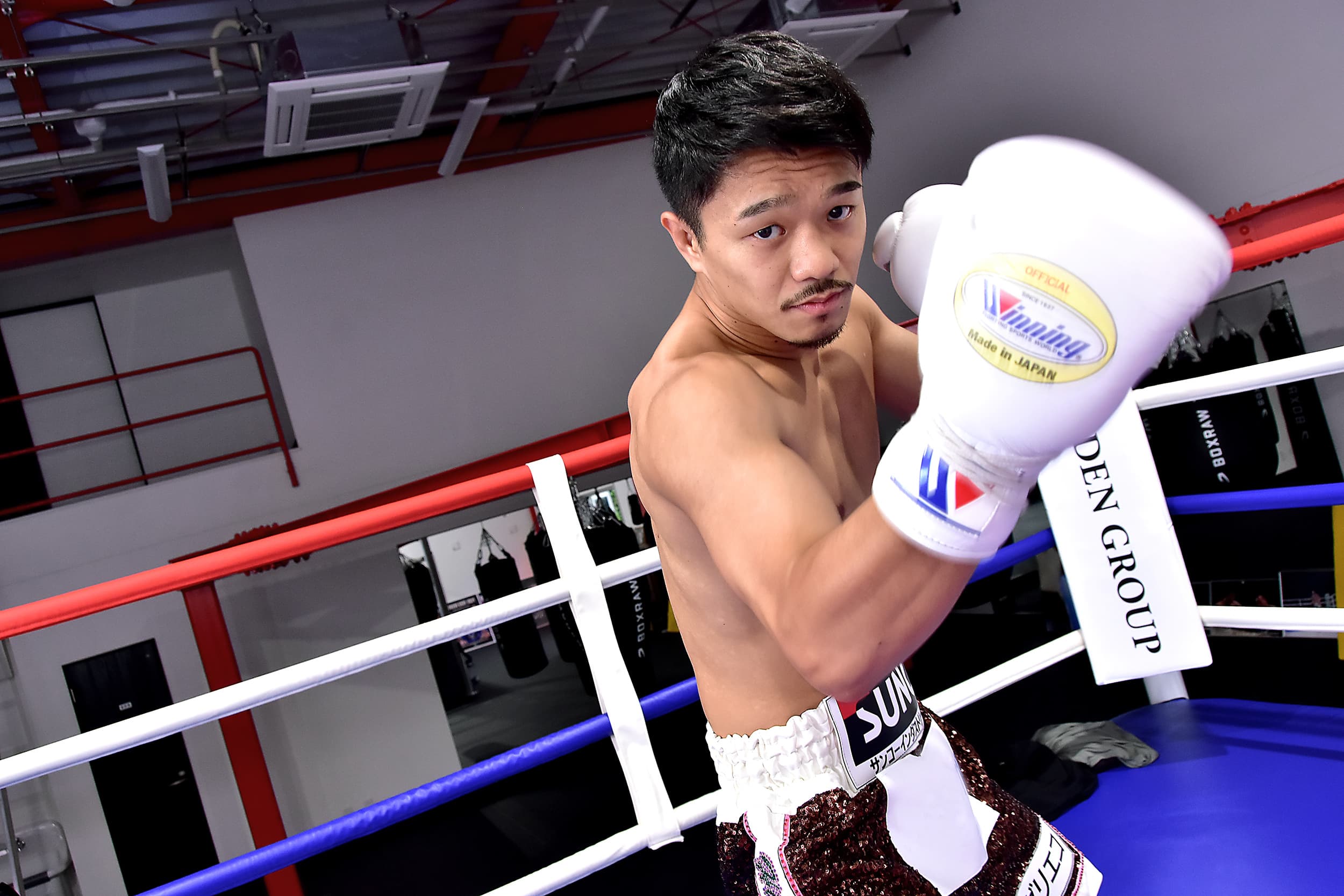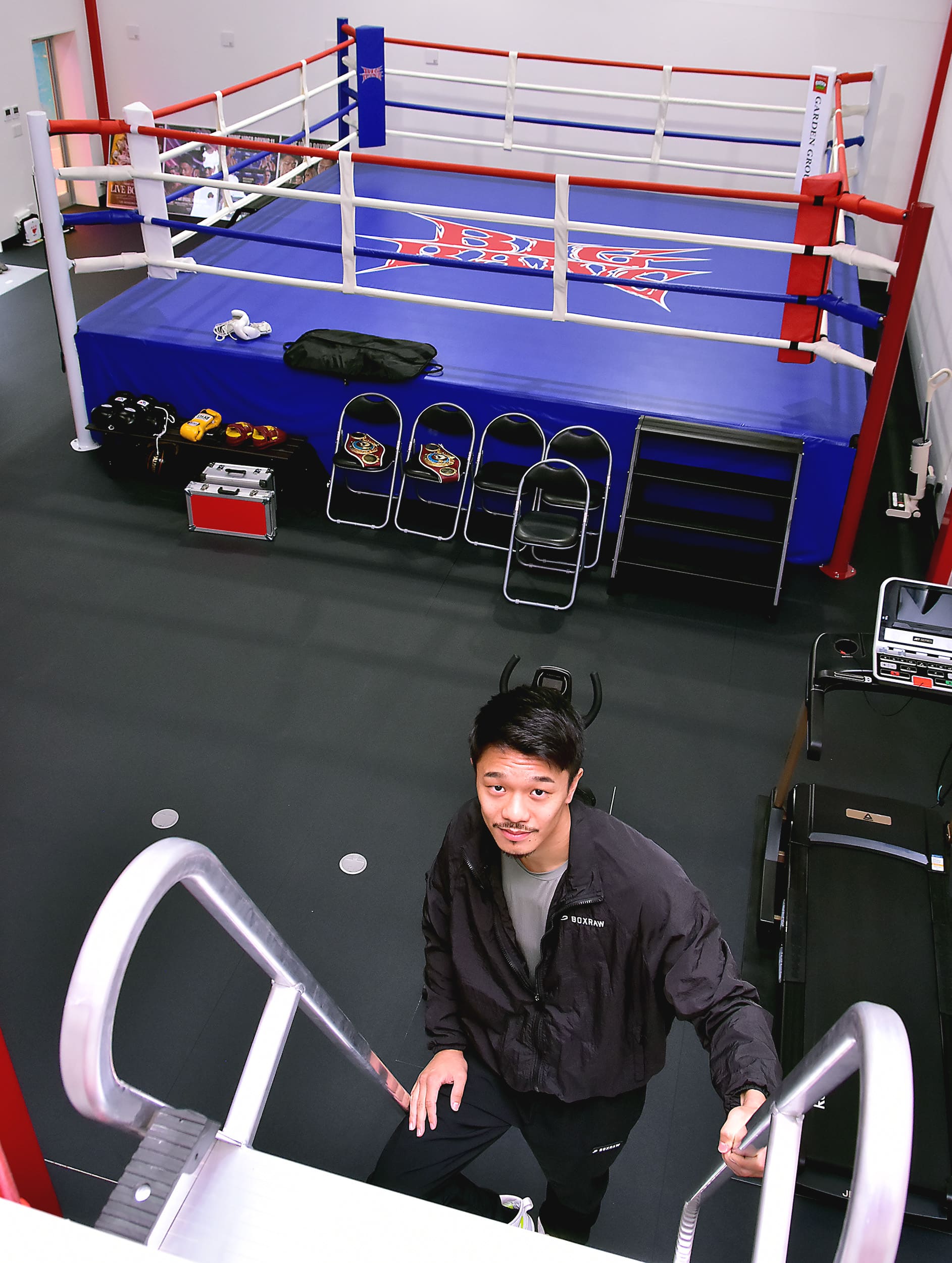 リングは世界戦仕様。スーパーバンタム級に上げ、無敗での4階級制覇を狙う中谷はここで身体作りに励む