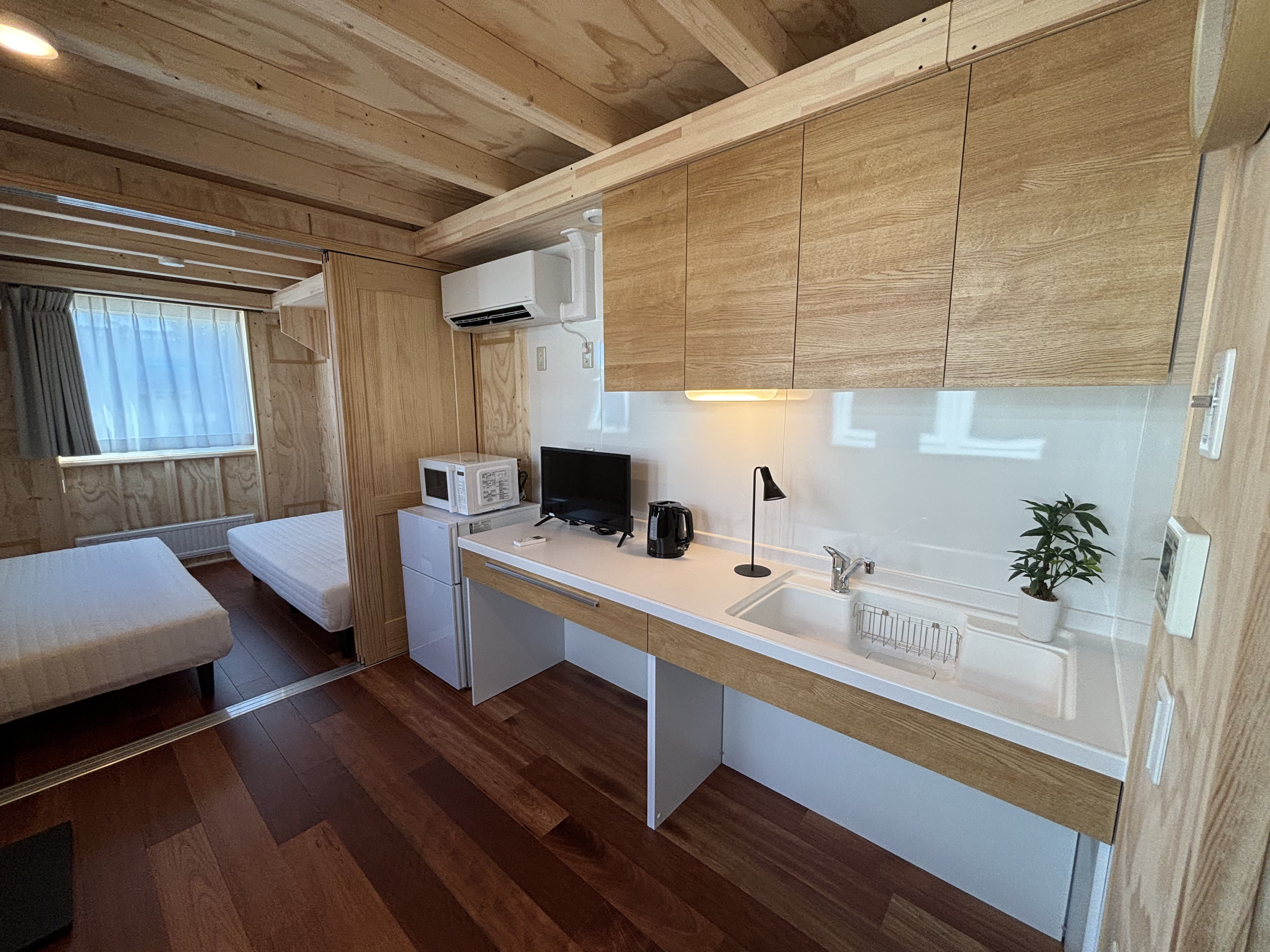 能登半島地震被災地への仮設住宅供給実績がある『株式会社アーキビジョン21』が躯体(くたい)の製造とインフラを整備し、家具業界大手の『株式会社ニトリ』が内装工事および家具・家電・寝具などの納品を担当する。