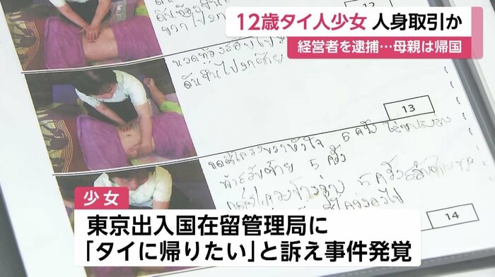 店に寝泊まりしながら働いていた少女の売上金は、母親の関係する口座へ送金されていたという。少女が東京出入国在留管理局に「タイに帰りたい」と訴え出たことで、事件が発覚した。