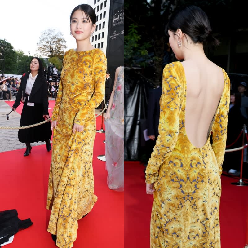 その他にも、ゴージャスな大物女優が次々と登場。台湾映画『ダブル・ハピネス』に出演した吉岡里帆(32)は、レースのスカートから白い脚が覗く黒のドレス姿。映画『ナイトフラワー』に主演した北川景子(39)は、光沢感のあるノースリーブドレスで、フロントスリットからはスラリとした美脚が覗いていた。共演の森田望智(29)は黒の超ミニドレスで、こちらも美脚を披露していた。