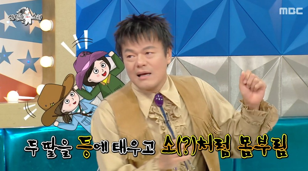 또 “지난번에 ‘몸으로 놀아주는 JYP식 육아법’이 화제가 됐다. 여전히 그렇게 놀아주냐”는 질문에 박진영은 “그렇다. 첫째는 여섯 살이고 둘째는 다섯 살인데 아이들이 저에게 원하는 건 온몸으로 놀아주는 거다”고 말했다.