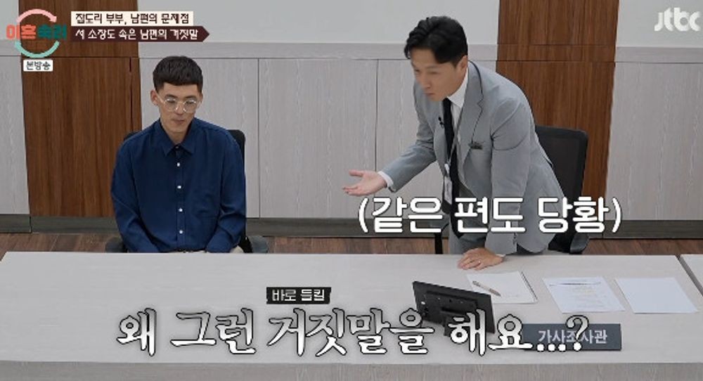앞서 공개된 남편 측의 VCR에선 남편에게 폭언과 폭력을 쓰는 아내의 모습이 큰 충격을 안겼던 바. 남편은 말대꾸를 했다며 아내에게 뺨까지 맞기도 했다며 아내가 무섭다는 반응을 보였다. 이어 아내 측의 VCR이 공개되자 분위기가 반전됐다. 아내는 남편이 거짓말을 반복 한다고 하소연했다. 또한 남편이 돈 사고를 친 것을 자신이 해결했다고도 밝혔다.