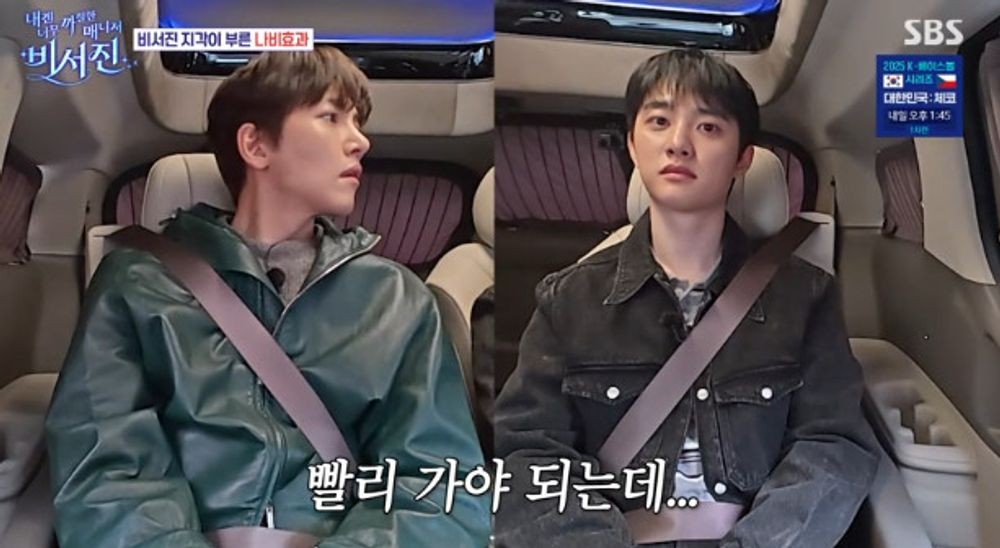 한편, 비서진은 헤어메이크업을 끝낸 도경수를 픽업해 조점석 유튜브 촬영 스케줄로 가야 하는 상황. 헤어메이크업을 끝낸 도경수는 하염없이 매니저들이 픽업하러 오기를 기다렸고 “지금 다음스케줄에 늦었다”라고 불안감을 감추지 못했다. 잔뜩 잔소리를 할 것을 장전하며 늦게 도착한 비서진 차에 다가간 도경수는 벼르던 것과 달리 깍듯하게 인사했다.