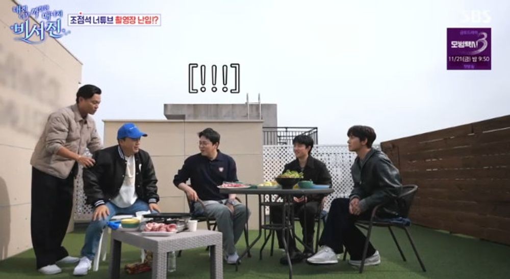 우여곡절 끝에 촬영장에 도착한 가운데 이서진은 조정석을 꼭 닮은 유튜버 조점석을 보고 조정석이 아니냐고 추궁했고 조점석은 조정석을 닮았다는 말을 많이 듣는다고 주장했다. 조점석이 약속시간 늦은 것을 추궁하자 이서진은 로드 매니저인 김광규 탓으로 돌렸고 김광규는 이서진이 20분이나 지각해서 늦었다고 서로를 탓했다. 결국 티격태격 싸우는 시늉을 하는 비서진의 케미가 웃음을 더했다.