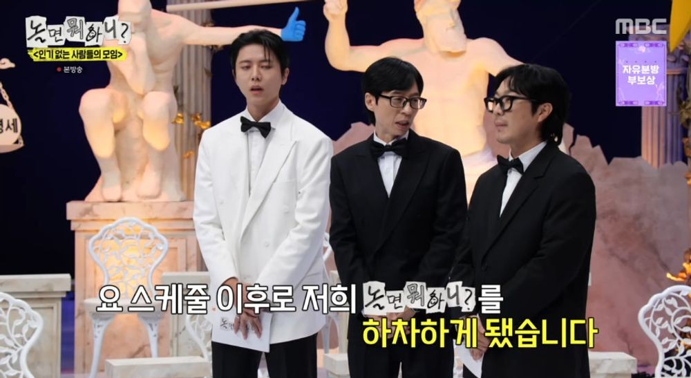 이날 오프닝에서 유재석은 “다들 아시겠지만 지난 3년 동안 이이경이 우리와 함께 고생했는데 지금 드라마와 영화 스케줄이 굉장히 많아서 제작진과 조율 끝에 ‘놀뭐’를 하차하게 됐다”라고 밝혔다.