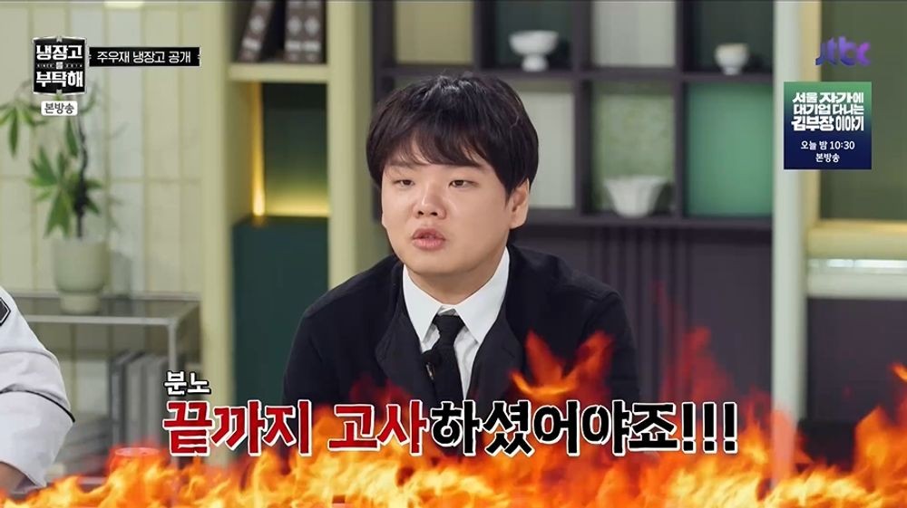 안정환이 “집에 있는 걸 다 갖고 오긴 한 거죠?”라고 확인하자 주우재는 “전부 다”라고 강조했다. 이윽고 공개된 역대급 냉장고를 본 셰프들은 “심하다”, “비상”이라며 난리가 났다. 주우재는 “거짓말할 수 없지 않냐. 방송이라고 해서 뭘 넣을 수 없지 않냐”라고 했지만, 윤남노는 “좀 넣어주시지”라고 속마음을 공개했다.