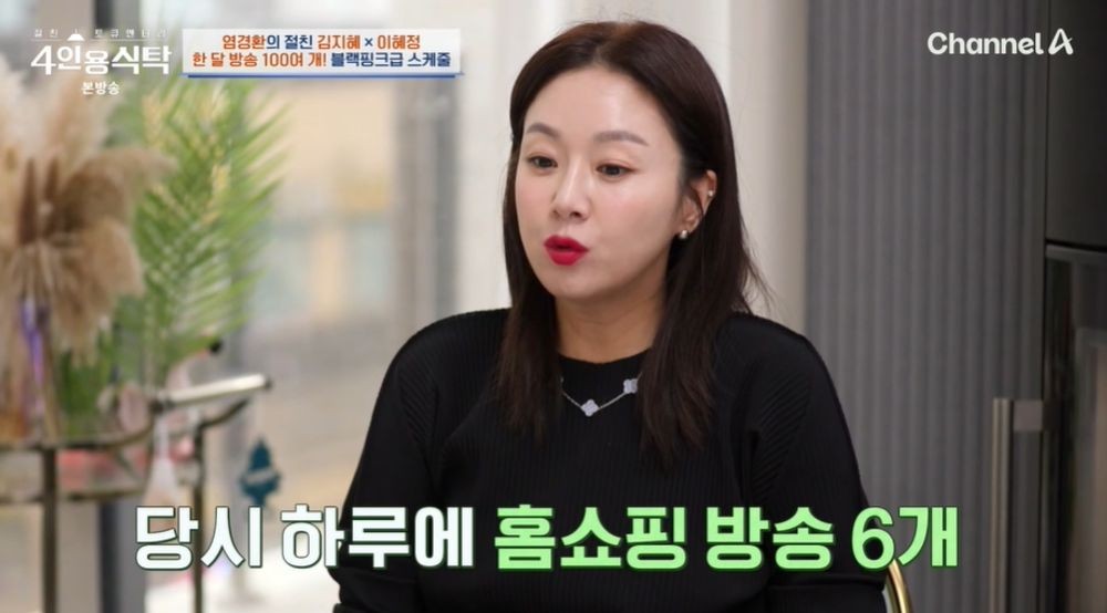 그런 가운데 김지혜는 홈쇼핑 방송으로 바빴던 시절에 관해 밝혔다. 김지혜는 “방송 많을 땐 한 달에 60개 한 적 있다. 하루에 방송이 6개인데, 이동 시간도 있고 메이크업도 해야 하지 않냐. 밤이 되고 마지막 방송을 하는데, 내가 아닌 거다. 입만 움직이는데, 현타가 왔다. 고객들도 알 거라 생각했다”라며 그 이후 방송 스케줄을 조절했다고 밝혔다.