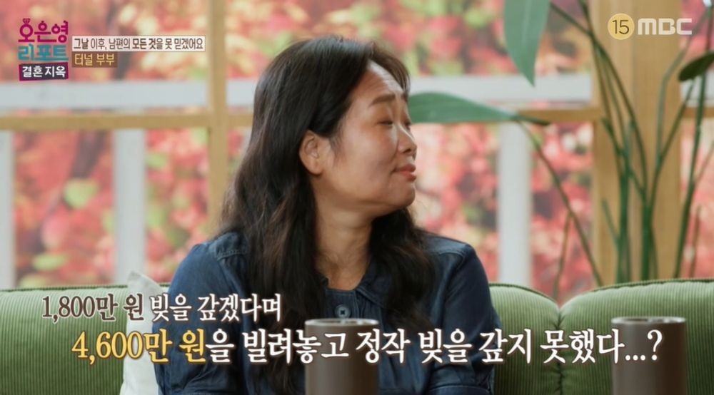 오은영은 다시 “4,600만 원에 대한 대출금을 받은 거 맞죠?”라고 확인했고, 결국 남편은 “받기는 받았다”라고 했다. 오은영은 “그럼 전환 대출 사기는 아니다. 4,600만 원은 받았으니까”라고 했고, 이를 처음 들은 아내는 충격을 받았다.