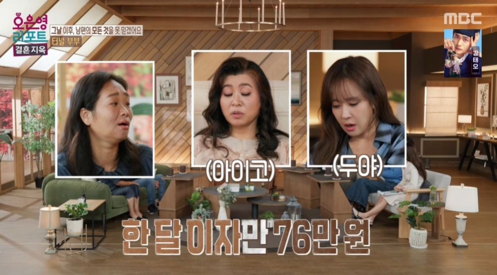 남편은 “갚으라고 불러준 계좌 번호가 사기 계좌였다”라고 했고, 오은영은 “못 갚았는데 4,600만 원 대출은 어떻게 또 받은 거냐”라고 의아해했다. 4,600만 원은 대부업체에서 빌린 거였고, 한 달 이자만 76만 원이었다.