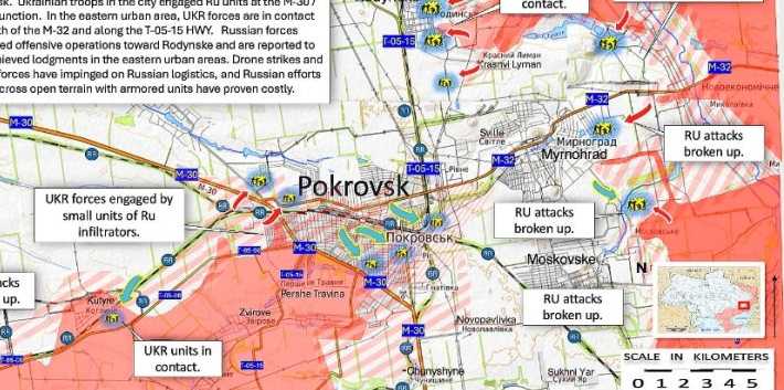 현지 리포트와 영상에 따르면 러시아군은 안개를 틈타 포크롭스크에 대규모 진입을 시도했으나, 실제 포위 상태는 확인되지 않았습니다.