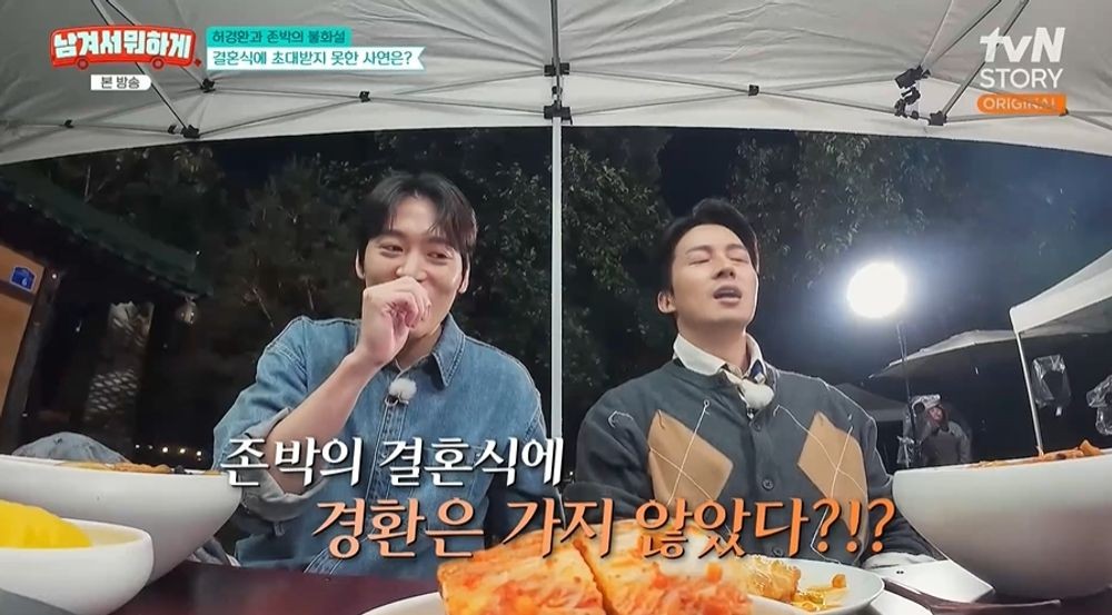 그러나 허경환은 초대받지 못했다고. 허경환은 “전 못 간 거다”라며 “전 기사로 먼저 (존박이 결혼한단 걸) 봤다. 너무 바쁠 수도 있고 내 나름의 이해를 하고 있는데, 그날 이연복 셰프님한테 전화가 왔다. 언제 결혼식 갈 거냐고”라며 “그래서 초대장을 받지 못했다고 했다. 내심 초대 안 한 이유가 있지 않을까도 싶고. 나 말고 누가 왔나 보려고 하다 너무 추잡해 보일까봐. 셰프님도 되게 난감해하시면서 ‘왜 안 했을까’ 하시더라”라고 당시 상황을 전했다.