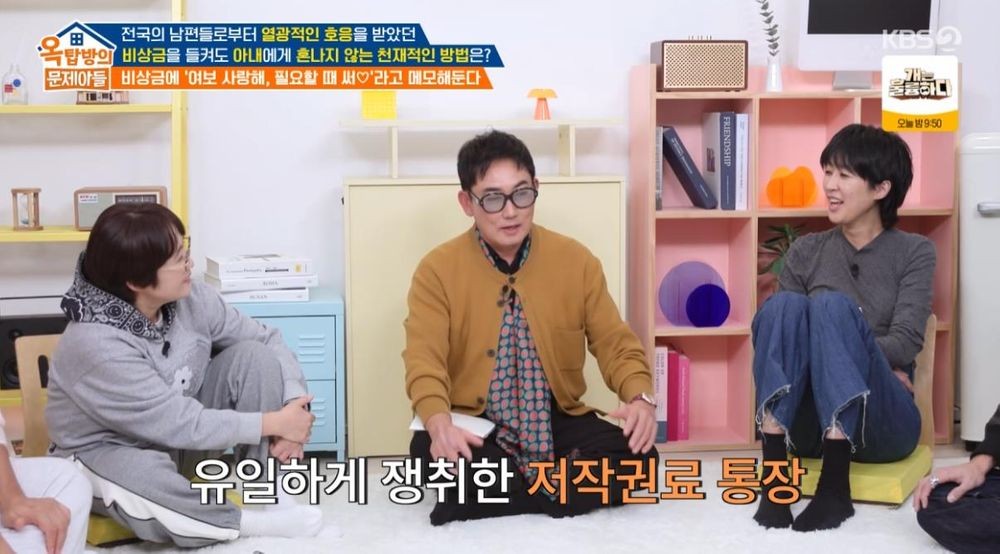 또 그는 “저는 비상금을 숨겨본 적은 없지만 저작권료 입금 통장만 내 이름을 바꿨다”라고 밝혔다. 이에 멤버들은 “그게 비상금 아니냐”라며 야유했다.
