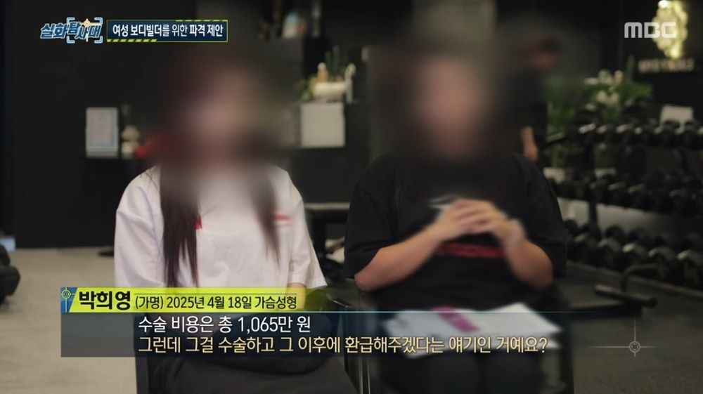 13일 MBC ‘실화탐사대’에서는 여성 보디빌더들에게 ‘무료 성형’을 미끼로 거액을 받은 뒤 잠적한 A씨의 실체를 파헤쳤다.