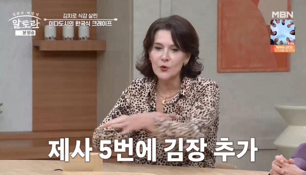 이날 한국 생활 35년 차 이다도시는 “집에서 김치 먹기 때문에 배추김치, 깍두기, 열무김치를 잘 만든다”라고 자신했다. 청국장을 사랑한다는 이다도시는 “프랑스에서도 발효 음식을 즐긴다. 치즈, 생크림, 버터, 와인, 빵 등 다 발효 음식이다”라며 “전 미식가 가정에서 자라서 요리를 할 수밖에 없다”라고 밝혔다.