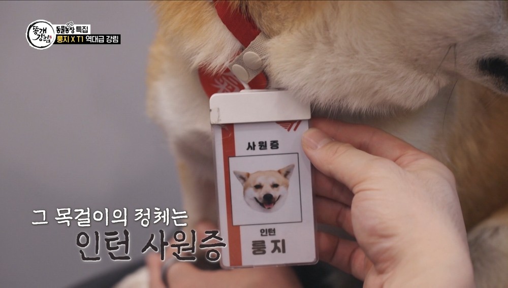 이날 대구 한 동네를 떠돌며 많은 상인의 사랑을 한 몸에 받았던 똥개 ‘룽지’는 이스포츠 게임단 T1 사옥을 찾았다. 일일 인턴 사원이 돼 사원증까지 받은 룽지는 건물 곳곳을 돌아다니며 긍정 기운을 전파했다.