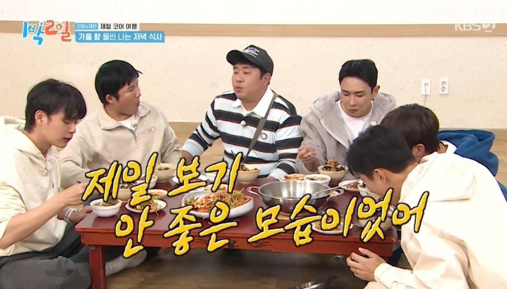 16일 방송된 KBS2 ‘1박 2일 시즌4’에서는 김종민, 문세윤, 딘딘, 유선호, 조세호, 이준이 제천 코어 여행을 떠났다.