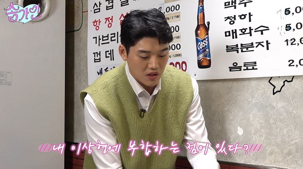 두 사람은 각자의 이상형에 대해서도 솔직하게 털어놨다. 송가인은 “방송에서 여러 번 얘기했다. 상남자 스타일”이라고 밝혔다. 권혁수는 “사실 가인이가 내 이상형에 부합하는 부분이 있다. 나는 노래 잘하는 사람이 너무 멋있다. 너무 좋다”고 말했다. 하지만 송가인은 “그러니까 이상형이 뭐냐. 노래 잘하는 거 말고 외적으로. 나랑은 안 맞다는 걸 돌려서 말하는 거 아니”냐며 갑자기 화를 내 웃음을 자아냈다. 권혁수는 청초한 스타일을 좋아한다며 외적 이상형으로 박보영을 꼽았다.
