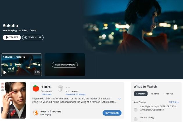 [TV리포트=송시현 기자] 영화 ‘국보’가 19일 개봉을 앞두고 있는 가운데, 로튼토마토에서 토마토 신선지수가 무려 100%라는 경이적인 숫자를 기록하며 눈길을 끌고 있다.