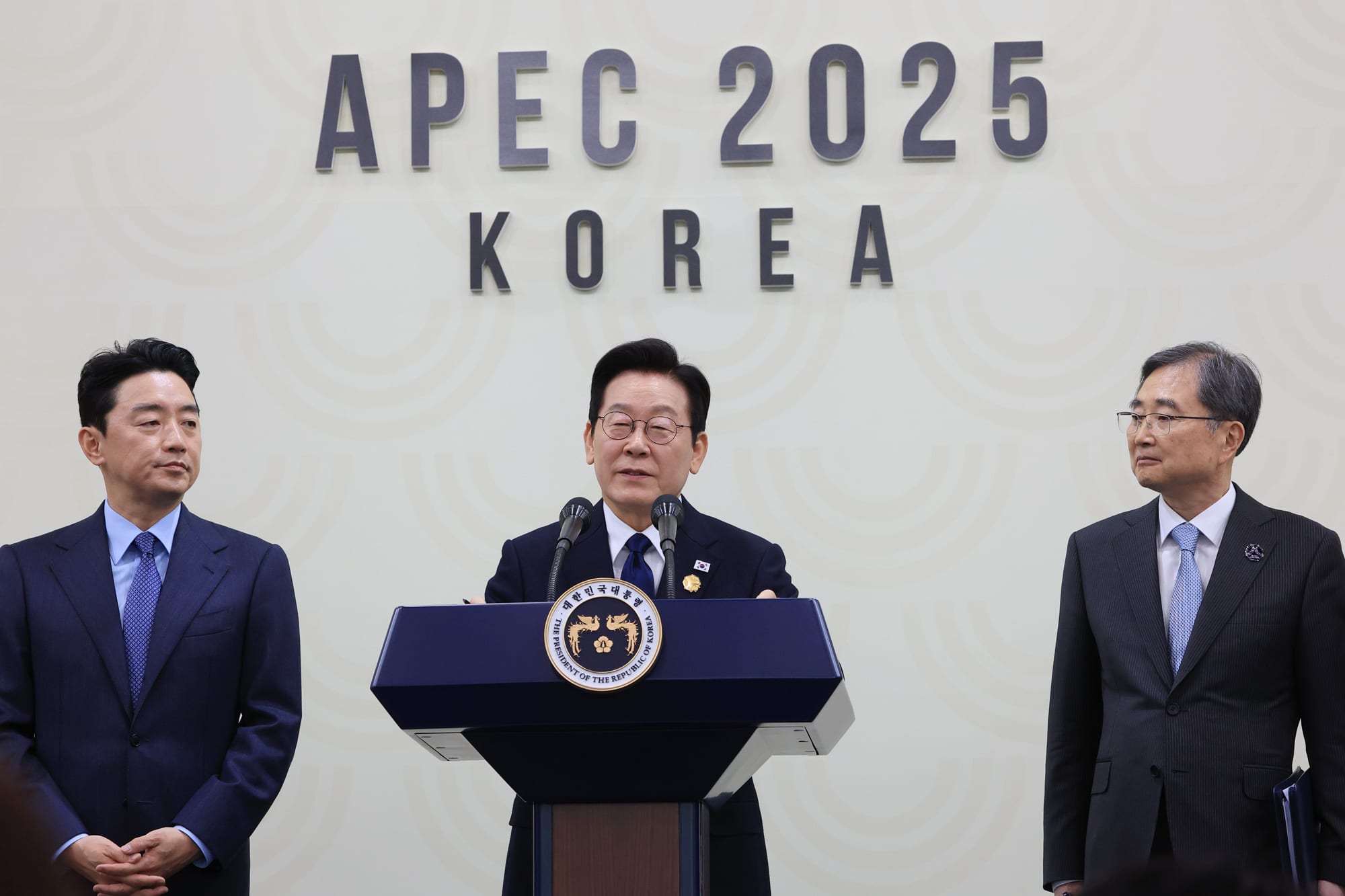 APECの成果や韓国の外交構想などについて述べたほか、日韓関係について「高市総理はとても立派な政治家だ。心配事はすべて消えた。次回は高市総理の地元奈良県で首脳会談を行いたい」とコメントした。