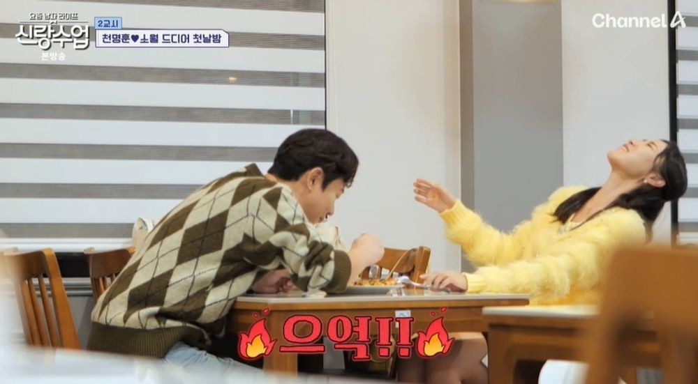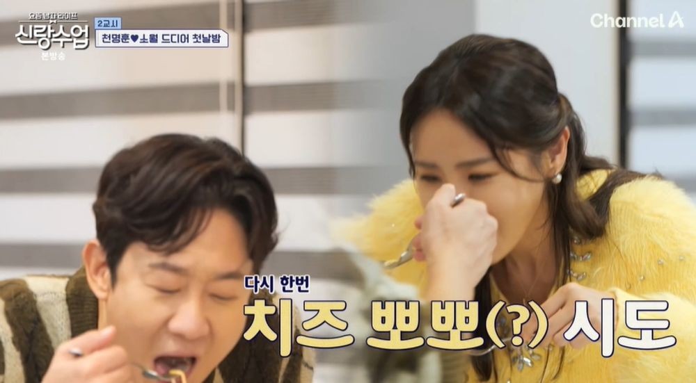 이어 치즈를 만드는 체험을 하러 간 천명훈과 소월. 천명훈은 계속 두 사람에 대해 자랑했고, 이다해는 “우리 둘에 대해 계속 얘기하는 거 좋지 않냐. 치즈만 만들면 그것도 별로”라고 말해주었다. 천명훈은 소월에게 치즈를 먹여주다가 자기의 입으로 반대쪽을 가져가려 했다. 하지만 치즈가 미끄러졌고, 눈치챈 소월은 바로 고개를 돌렸다. 천명훈은 “실패했어. 다신 못 해. 망했어”라고 안타까워했다. 이후에도 천명훈은 피자가 나오자 한 번 더 시도했지만, 소월은 “으악”이라며 뒤로 물러났다.