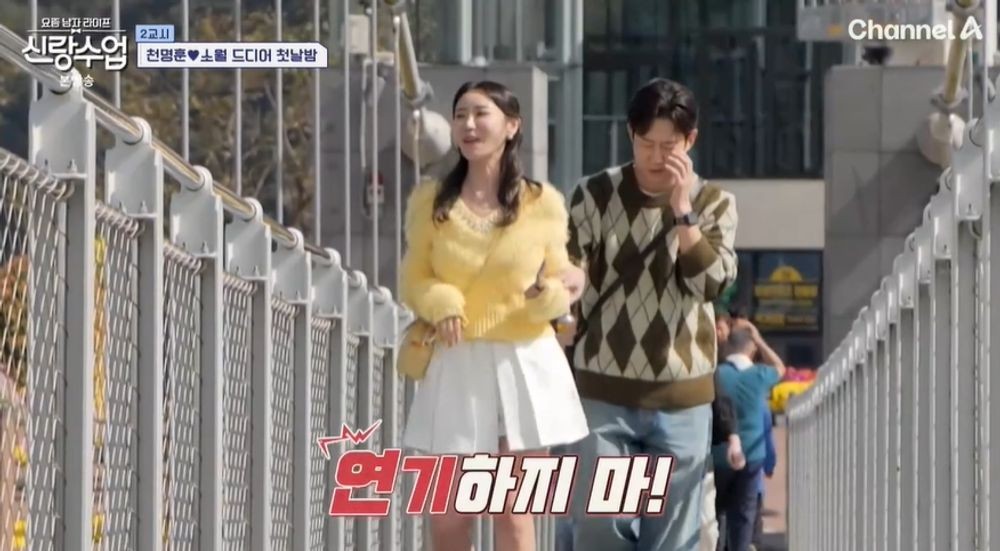 천명훈은 출렁다리를 건너며 무서워했지만, 소월은 성큼성큼 걸어갔다. 천명훈은 멀미가 난다며 손을 잡아달라고 은근슬쩍 팔을 잡았고, 소월은 “연기하지 마”라며 받아주지 않았다. 천명훈은 “결혼하시나요?”란 안전요원의 질문에 “365일 중 한 날을 잡는 게 쉽지 않다”라고 너스레를 떨었다. 꽃밭에 간 천명훈은 “소월이 어디 있어?”라며 찾는 척 연기했고, “옷을 그렇게 입어서 헷갈려”라고 말하기도.