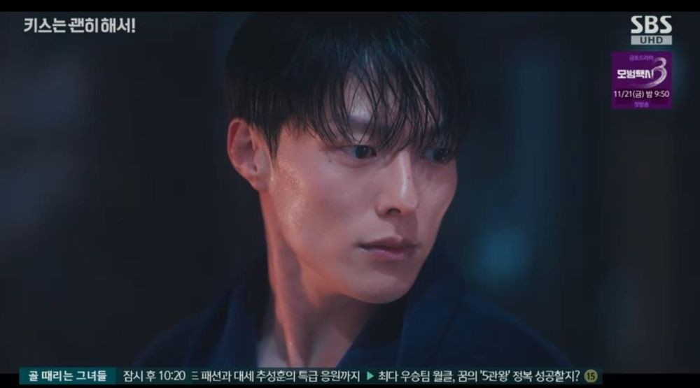 19일 방송된 SBS 수목드라마 ‘키스는 괜히 해서!’에서 고다림(안은진 분)을 보고 혼란스러워하는 공지혁(장기용 분)의 모습이 전파를 탔다.
