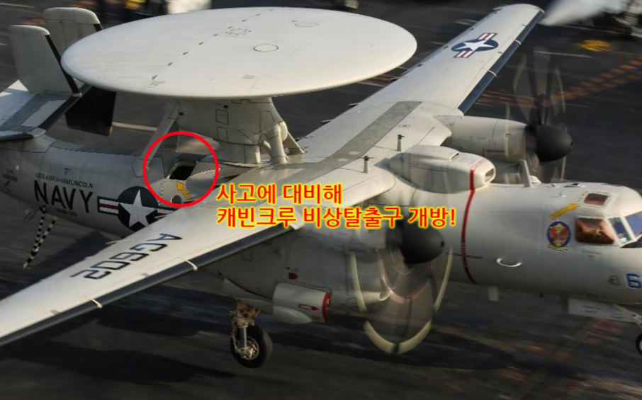 조기경보기는 이함 시 사고 위험 때문에 항법사·전술관제사들이 탑승한 상태에서 탈출구를 열어놓고 이륙하는 것이 세계 표준 절차입니다.