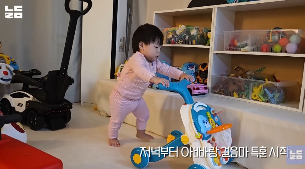 영상 속 이다은은 “남주야, 이리 와봐. 걸어봐”라며 손을 내밀었지만 아들은 끝내 다가오지 않았다. 이어 저녁에는 남편 윤남기와 함께 집에서 걸음마 특훈을 진행하며 “아직은 걸음마 보조기와 친해지는 단계다”라고 설명했다.