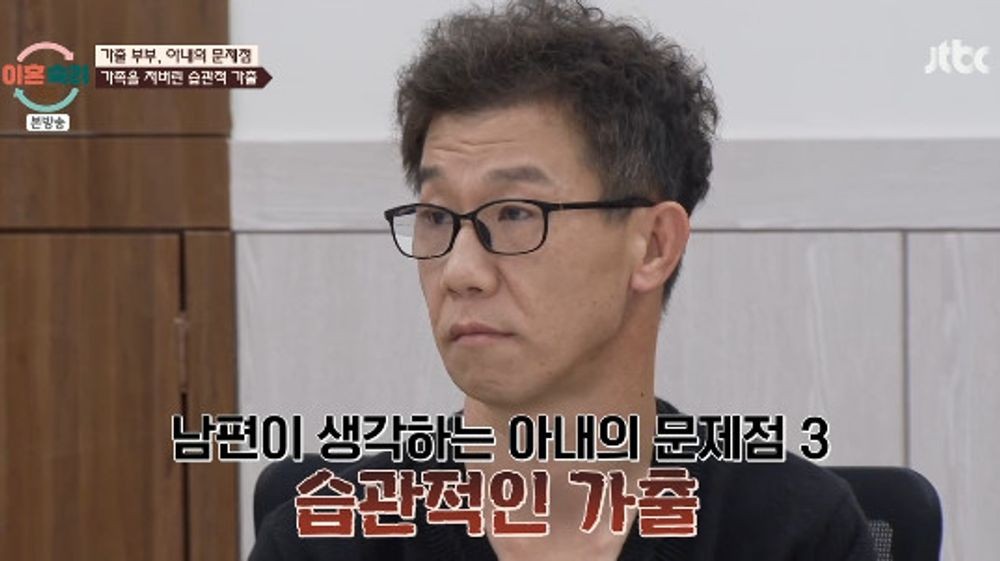 믿기지 않는 아내의 당당함에 서장훈은 헛웃음을 터트리며 “오늘 나 실성한 것 같다. 너무 어이가 없어서”라고 말했다. 남편은 아내에게 믿음이 가지 않는다며 “짧게는 3~4일 가출에서 보름, 한 달, 6개월, 길게는 최근 2년까지 점점 늘어나더라. 20년 동안 가출이 15번 정도 될 것”이라며 가족을 생각하지 않는 아내의 습관적 가출을 지적했다.