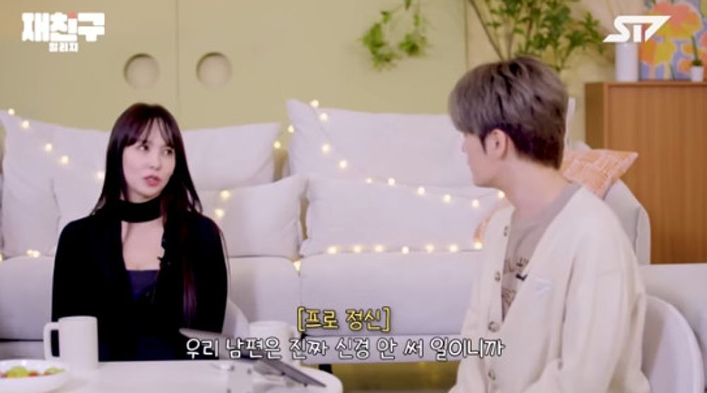 김지우는 “근데 전혀 걱정 안 한다. 어차피 이 사람은 내 남편이고 온 세상 사람들이 내 남편인 거 알고 루아 아빠인데?”라고 전혀 상관없다고 말했다. “전혀 상관없다? 멋있다”라는 김재중의 반응에 이석훈 역시 “(레이컨 킴) 형 멋있어”라고 말했고 김지우 역시 “우리 남편 좀 멋있어”라고 남편 사랑을 드러냈다.