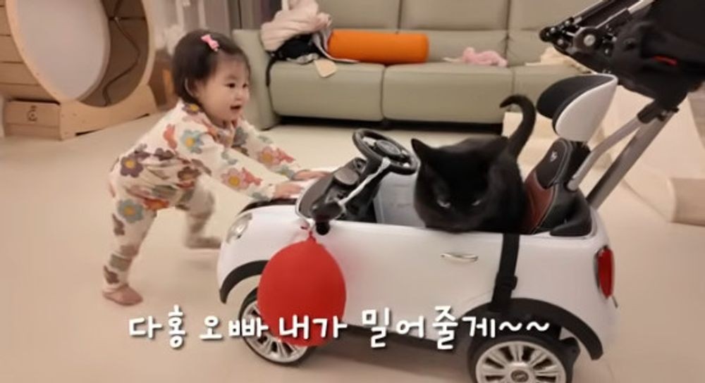 이어 야외로 재이와 유아용 자동차를 타러 나간 부부. 딸 재이는 자동차에 앉아 좋아하는 음악을 들으며 산책을 즐기고 부부 역시 행복해하는 재이의 모습에 흐뭇해했다. 집에 돌아온 부부는 반려묘 다홍이를 재이의 유아용 자동차에 태워줬고 그 소리를 듣고 재이가 등장했다. 재이는 다홍이를 태운 채 유아용 자동차를 밀어주었고 박수홍은 “재이가 밀어준다. 잘 했어요!”라며 딸 재이를 기특해했다. 또한 슬리퍼를 귀에 대고 ‘여보세요’ 놀이를 하는 재이의 엉뚱한 행동에도 박수홍은 배꼽을 잡고 웃으며 행복한 아빠의 모습을 보였다.