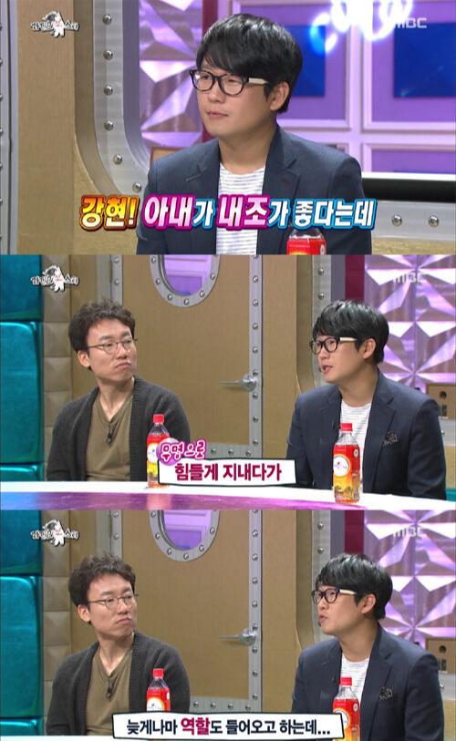 4살 된 아들이 있다고 밝힌 김강현은 또 “일할 때는 전화도 안 온다”고 덧붙였습니다. 이에 유부남 MC와 게스트들은 속 깊은 아내를 둔 김강현에게 부러움의 시선을 보냈고, 차태현은 “우리 아내는 베드신 절대 찍지 말라더라”라고 폭로해 스튜디오를 웃음바다로 만들었습니다.