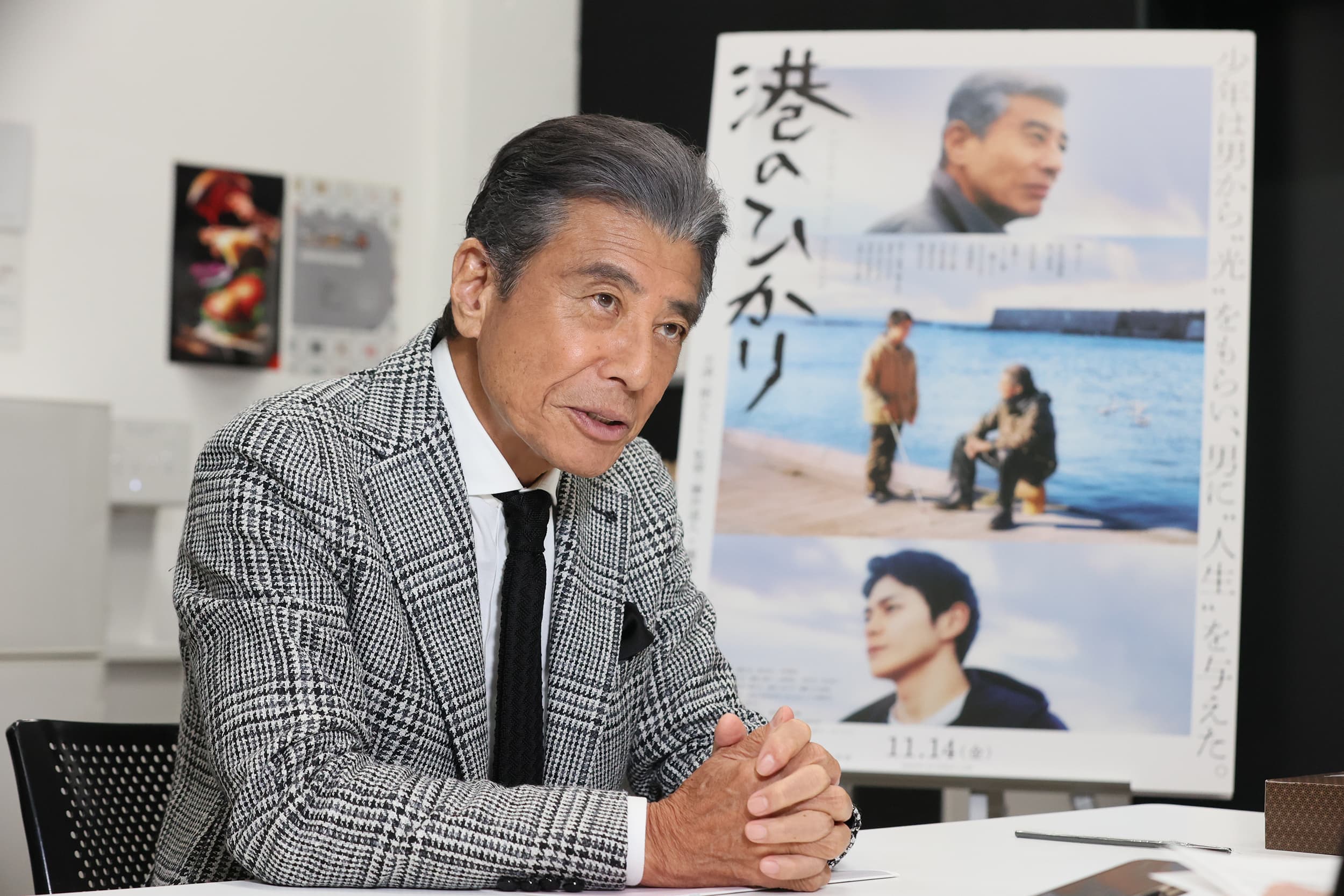 ’76年に銀幕デビューし、今年で芸能活動50周年。年齢を重ねるにつれ演技と色気に深みを増していく、芸能界一の″ダンディズム″。「映画は最初のワンシーンで決まる」と語った名優の7年ぶり単独主演映画『港のひかり』は公開中