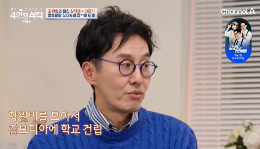 또한 김재원은 “아들이 3년간 캐나다 생활을 하고, 중학생이 되면서 (한국에서) 학원을 보냈다. 2주 만에 오더니 ‘아무리 봐도 아동 학대 같다’고 하더라. 학교 7시간, 학원 5시간, 숙제 3시간은 있을 수 없는 일이니, 학원 안 다니고 혼자 하겠다고 했다. 사교육을 안 받으니 제가 그 돈으로 적금을 들어줬다”라고 밝혔다. 그 돈으로 아들은 캄보디아에 학교를 짓는데 기부했다고.