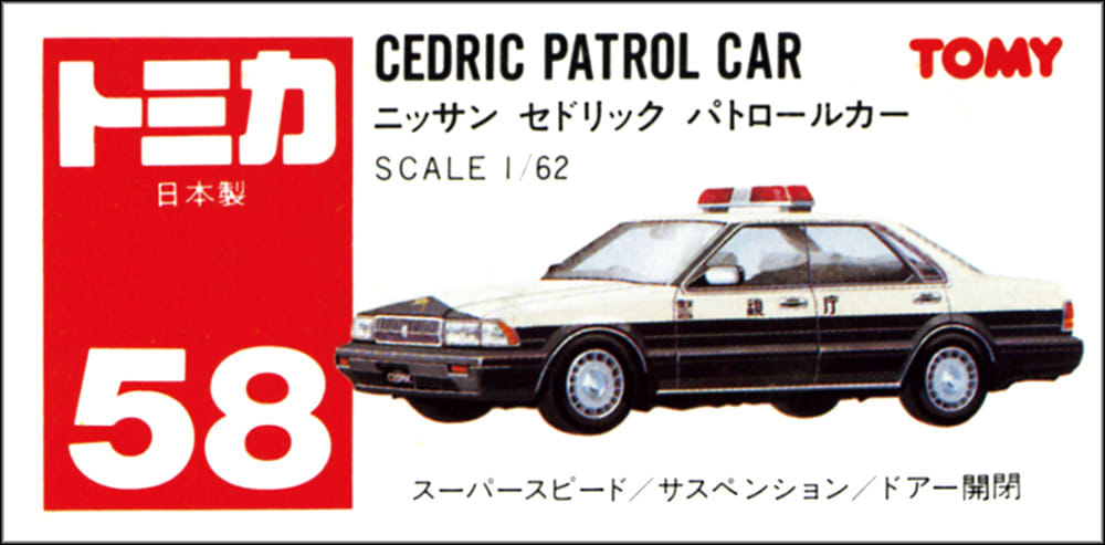 現在に続く赤箱トミカにも年代順があり、当初のものはトミカ白文字の下に日本製の文字が印刷されTOMYの文字が角丸で赤色、その後、同体裁で日本製の文字が取れたもの、そしてTOMYの文字が青色のものという現在に至ります。パッケージ変更時には新旧混在で販売されていました。