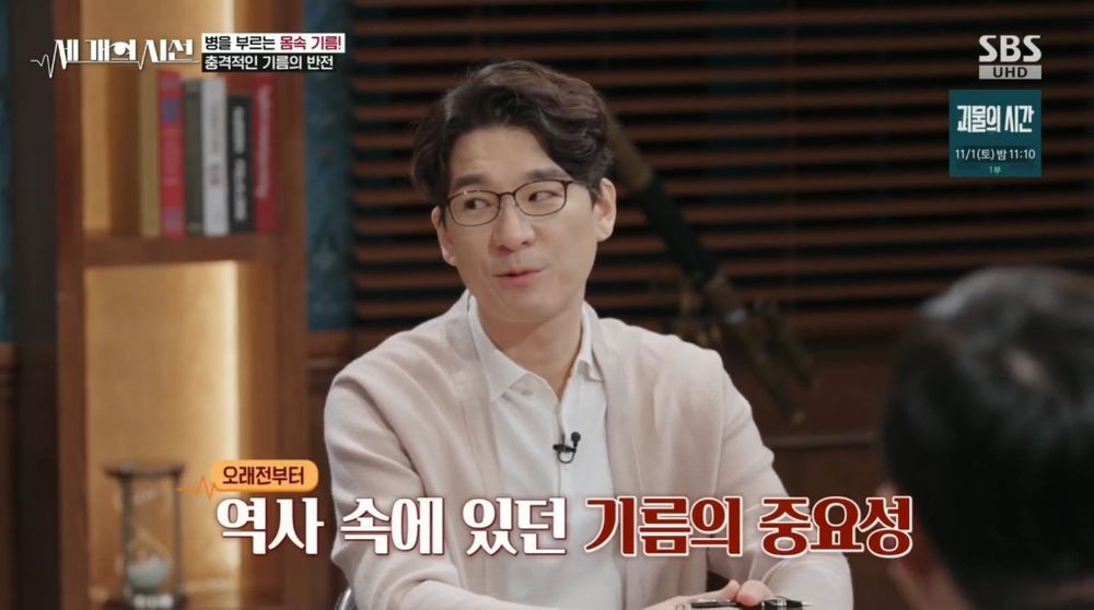 이창용 역사학자는 “고대에는 기름이 생명과 치유, 부활의 상징이었다”며 “하지만 현대 산업화 과정에서 기름은 질병의 씨앗으로 변질됐다”고 설명했다. 곽재식 과학 작가는 “지방의 핵심 사용처는 세포막이다. 심장, 혈관 모두 세포로 만들어졌으니 세포막이 건강해야 우리가 건강하다”며 “지방은 생명에서 굉장히 중요한 물질”이라고 말했다.
