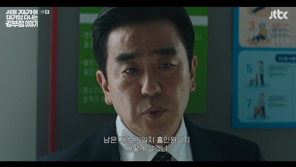26일 방송된 JTBC 새 토일드라마 ‘서울 자가에 대기업 다니는 김 부장 이야기'(이하 ‘김 부장 이야기’) 2회에서는 김낙수(류승룡 분)가 허태환(이서환)을 찾아간 모습이 그려졌다.