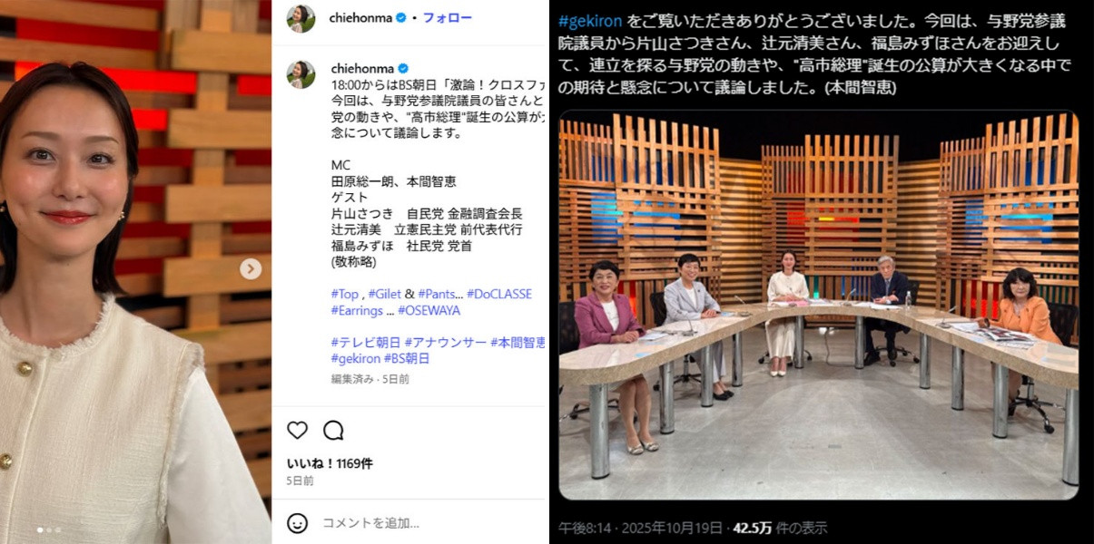 高市早苗首相への暴言で炎上したジャーナリスト・田原総一朗氏が、10月26日に自身のXで謝罪動画を投稿。その態度が逆に反発を招いている。 「田原氏は10月19日放送の『激論!クロスファイア』(BS朝日)で、選択的夫婦別姓に否定的な高市首相を批判するゲストの辻元清美氏、福島瑞穂氏に、『“あんなやつ”は死んでしまえと言えばいい』と発言し炎上。これを受けて同氏の事務所は『発言は高市氏への批判ではなく、野党はしっかりしろという怒りの意味合いだったが、乱暴な言葉になった』と弁明しました」(芸能記者) だがこの初期対応の甘さが、この後の混乱を招くことになる。 「今度は田原氏にX上で、テキストのみで謝罪をのせます。『発言の主旨は、野党に檄を飛ばそうとしたものでしたが、きわめて不適切な表現となり、深く反省しております。本当に申し訳ございませんでした』という文面が投稿されたのですが、これには現在、約1万2000件の批判が殺到。そこで今度は26日、本人がカメラの前に出た、20秒の謝罪動画をアップ。ノーネクタイでヨレヨレのスーツを着た田原氏が、おぼつかないしゃべりで『先週放送の「激論!クロスファイア」で不適切な発言をしたことを謝罪いたします。高市総理、そして視聴者の皆様、関係者の皆様、本当に申し訳ありませんでした』と述べながら頭を下げたのです」(同前) ところかこの謝罪動画に対しX上では、 《「失言回避」の形式主義にしか映らない》 《全然心がこもってない》 《ジャーナリストなら自分の言葉で話せよ。カンペ棒読みやんけ》 など、またもや厳しい指摘が寄せられてしまった。芸能プロ関係者が語る。 「動画内では田原氏の目線が終始下を向いており、カメラに目を合わせたのは20秒のうちわずか数秒でした。視聴者には、形式的に謝罪を済ませようというという心のうちが見透かされてしまったようです。現在、この動画だけで3000件もの批判コメントが集まっています」(芸能プロ関係者) 10月24日、BS朝日の臨時取締役会で「田原氏の発言はモラルを逸脱している」として、19日の放送を以て『激論!クロスファイア』が打ち切りとなった。芸能プロ関係者はこう語る。 「ここまで炎上するとは、事務所サイドも考えていなかったのでしょう。実際、過激な言葉遣いは田原氏の持ち味でもありますからね。とはいえ、最初からもっと危機意識をもって謝罪の仕方を考えればもう少し抑えることもできたかもしれませんね。事態を軽く見たツケだと言えそうです」 田原氏のXのプロフィール概要欄には今でも担当番組として『激論!クロスファイア』が記載されたまま。果たして信頼回復は可能なのかどうか……。
