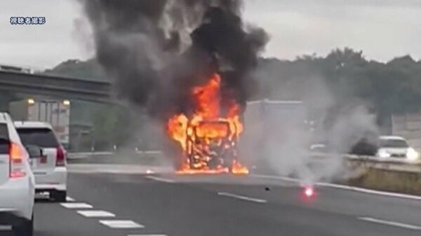 車から真っ赤な炎と黒煙…上信越道で車がトラックに衝突し全焼 けが人なし