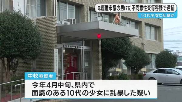 今年4月、県内で10代の少女に乱暴した疑いで27日、元鹿屋市議の男(76)が逮捕されました。 不同意性交等の疑いで逮捕されたのは、鹿屋市上野町の元鹿屋市議、中牧和美容疑者(76)です。 警察によりますと、中牧容疑者は今年4月中旬、県内で面識のある10代の少女に乱暴した疑いがもたれています。 被害者の関係者から警察に連絡があり、関係者への聞き取りや防犯カメラの捜査などから中牧容疑者が浮上したということです。 警察は、被害者のプライバシー保護を理由に、中牧容疑者の認否について明らかにしていません。 中牧容疑者は2018年4月まで鹿屋市議を務めていました。